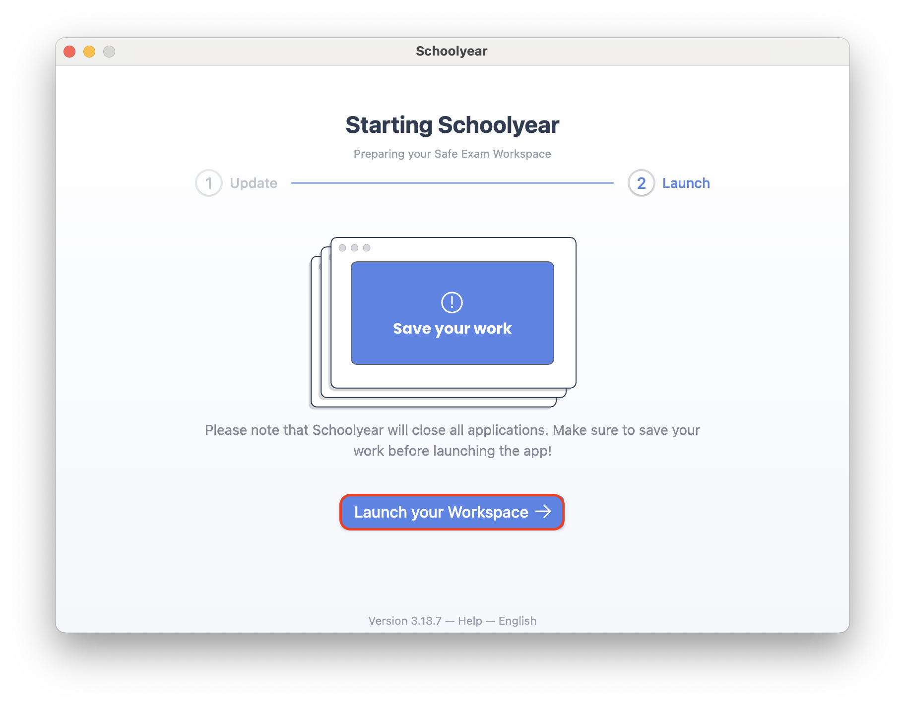 TIP: If you have installed Schoolyear before, you can directly click “Launch”.