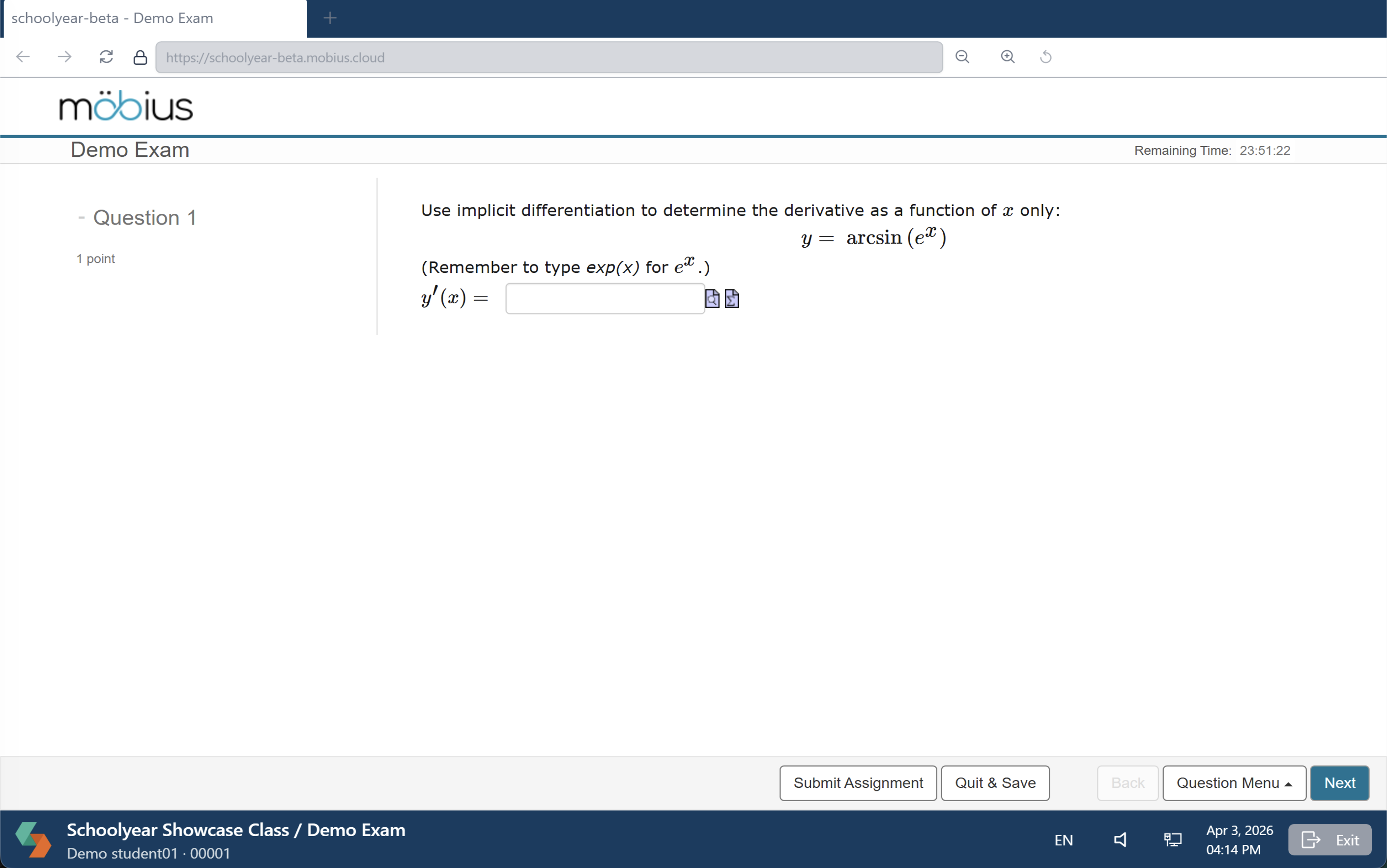 - Open a browser supported by Schoolyear (see minimum computer requirements) and log in to Möbius. How you log in depends on how your institution has set this up.