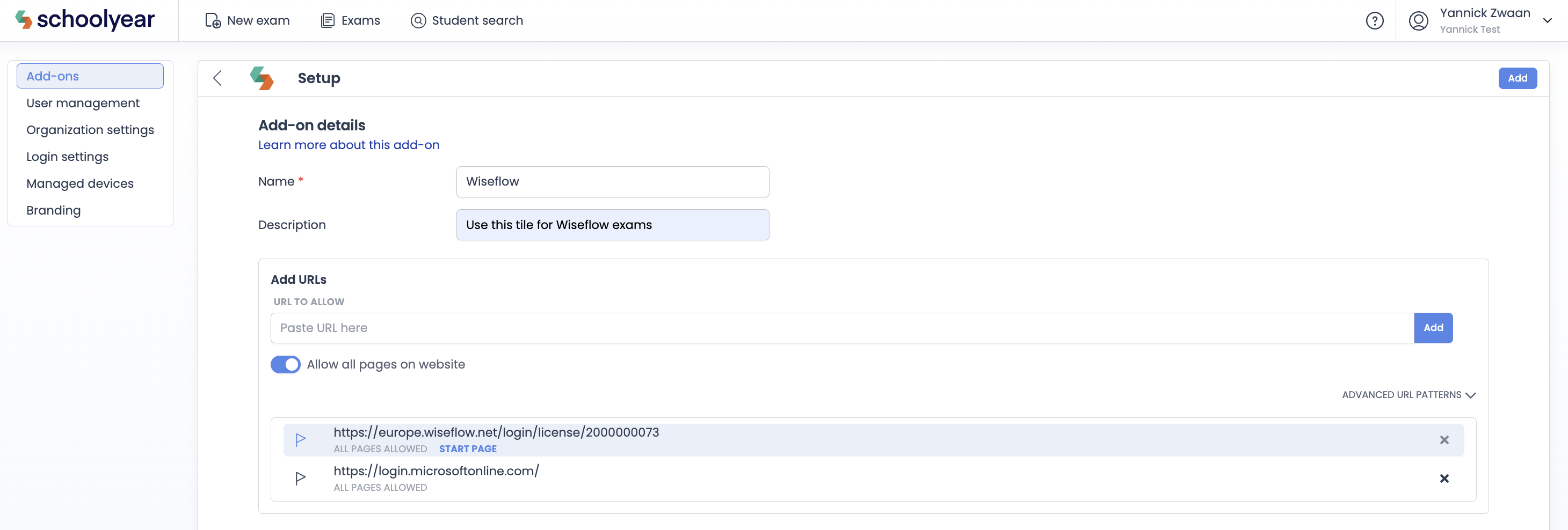 - Add your Wiseflow login page as the first URL and click add. This will now be become the start page.