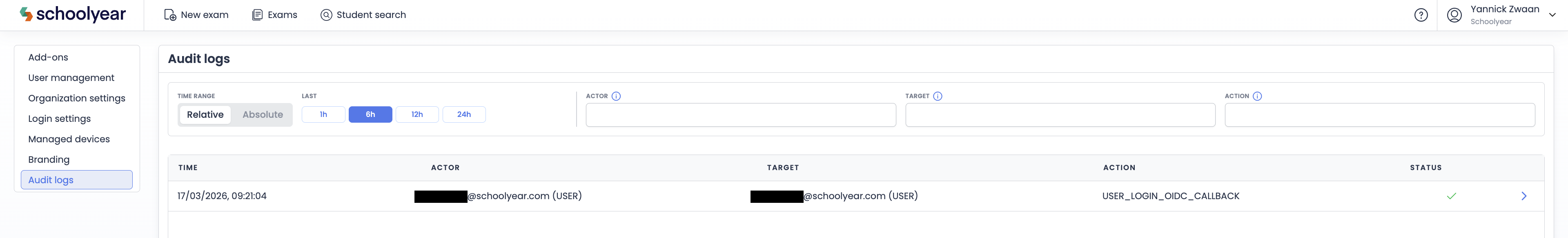 If you are looking for something specific or are unsure how to use the audit logs, you can always contact support@schoolyear.com.
