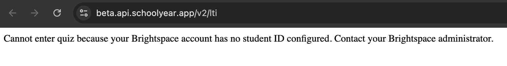 Error: "Cannot enter quiz because your Brightspace account has not student ID configured"