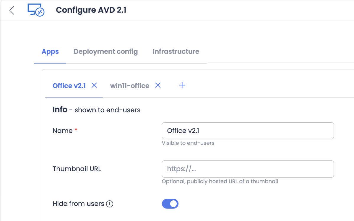 With this new functionality, you can activate the "hide from users" toggle per app (image 1). Once you have done so, only Admins and AVD-admins will be able to see the application when scheduling an exam. Regular users will not see the application. The application displays an orange border to visually indicate that the application is not generally available (image 2).Image 1: hide app from users Image 2: Orange outline app, not visible for regular users