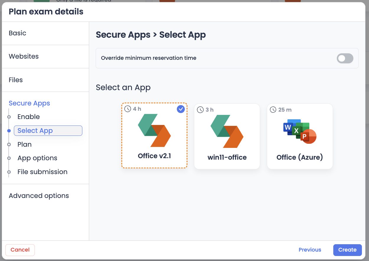 - Confirmation pop-up when you are reserving Secure Apps capacity. This pop-up is only shown the first time you make plan the exam.