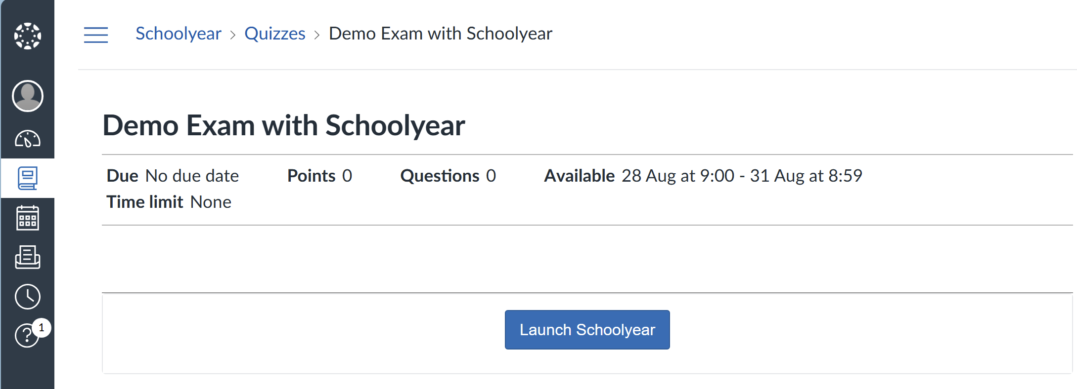 Dit artikel beschrijft hoe je een toets met Schoolyear start vanuit Canvas Quizzes.