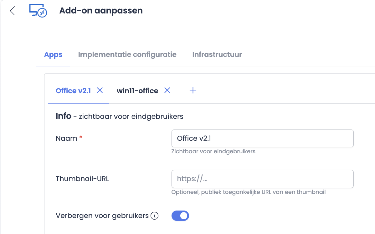 Mogelijkheid om in de Secure Apps console een App te verbergen voor gebruikers