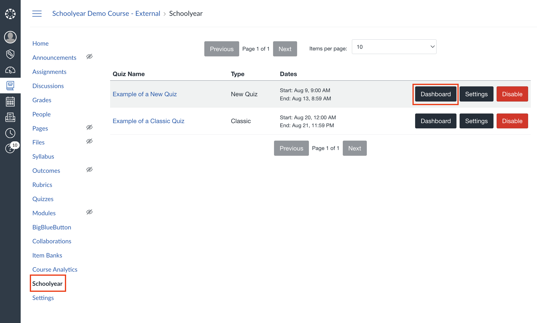 Dashboard openen vanuit de toetsapplicatie